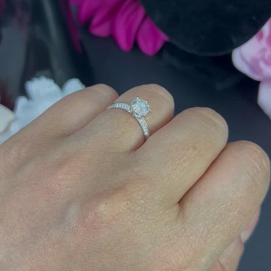 Inspired by Brigid — Celtic goddess of sacred flame, healing, and creativity — this sterling silver and brilliant moissanite solitaire is a quiet vow of devotion to your own light. It’s not a promise to another, but a bold yes to yourself.