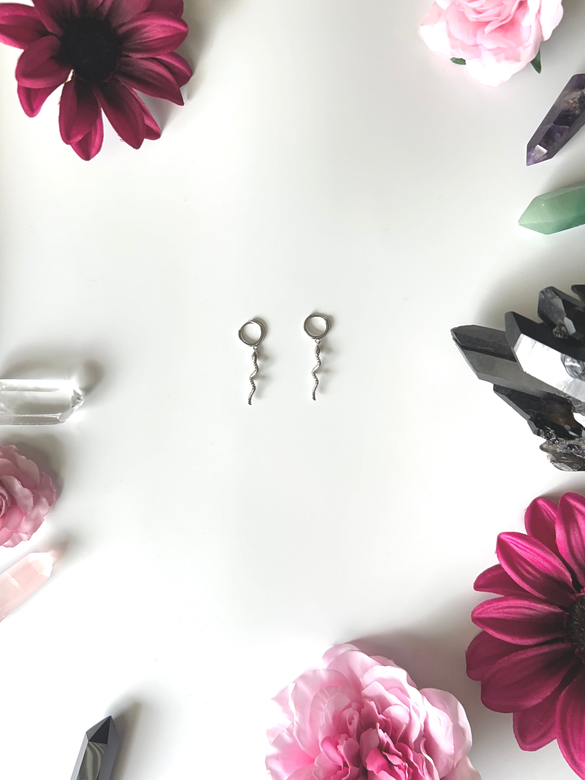 TheseĀ I AM MEDUSA earrings are a tribute to the sacred feminine ā misunderstood, magnetic, and utterly untamed.Ā Delicate sterling silver hoops hold twin serpents that dance as you move, whispering ancient power with every sway.