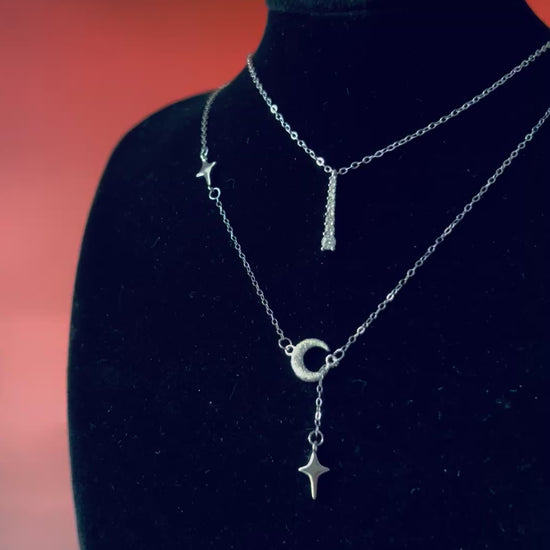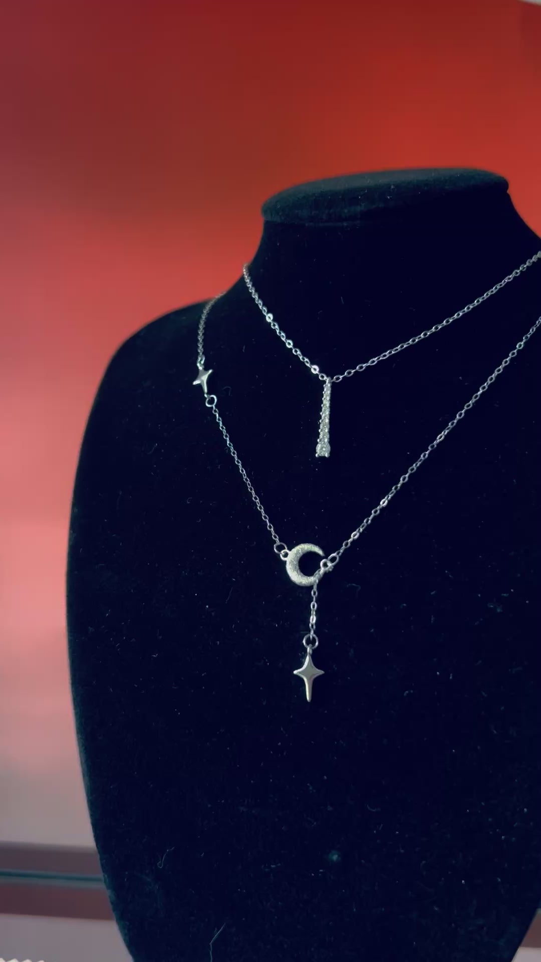 • Layer with dainty chokers or lunar pendants for ethereal energy