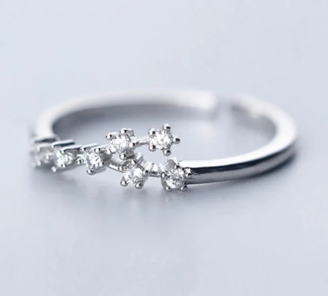 This I AM WATER ring honors Cancer — tender, powerful, and deeply connected to the moon. This adjustable sterling silver ring is adorned with stunning zircon stones, mapping the Cancer constellation like a quiet prayer.